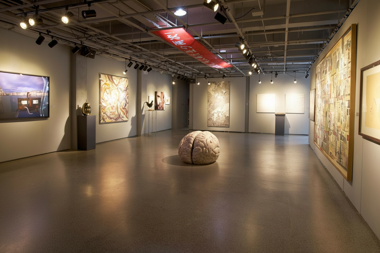 Marble brain embedded with heat sinks and computer chips. Produced 2010. Exhibited Art Beijing, 2011.